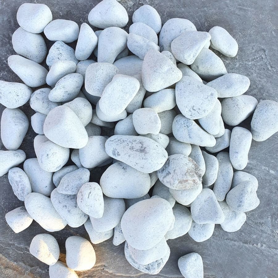 White Pebbles - Small: decorative stones that are used for landscaping and decor. They provide a clean, modern look and are durable, low-maintenance, and can be used for garden beds, pathways, potted plants, and water features